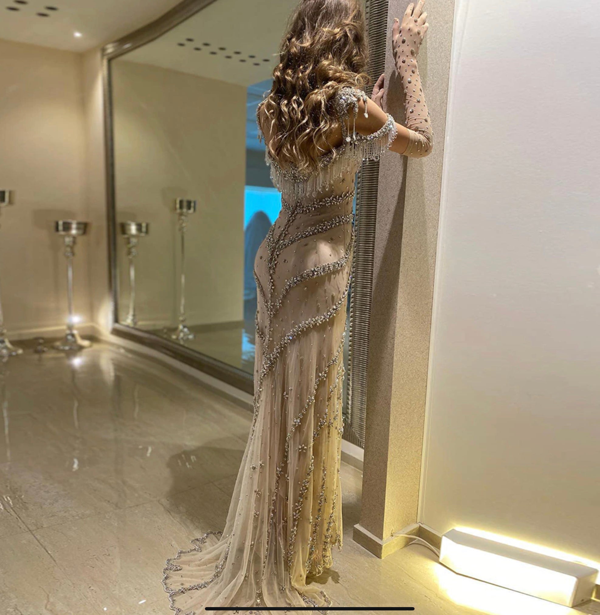 Met Gala Kendall Jenner evening dress for all vintage Art Deco loving, modern brides, graduates & debutantes. Blush and bejewelled! This gown needs no explanation. Amazing choice for alternative wedding dress, bridal gown or formal evening dress. The beading is a combination of crystals and glass beading and the sweep train steps it up a notch on this modern vintage style formal, evening dress. Sexy cut out shoulder detail for demure and modest allure. Purchase lined, half lined with mini skirt lining or sheer. Matching item in listing description and gallery.